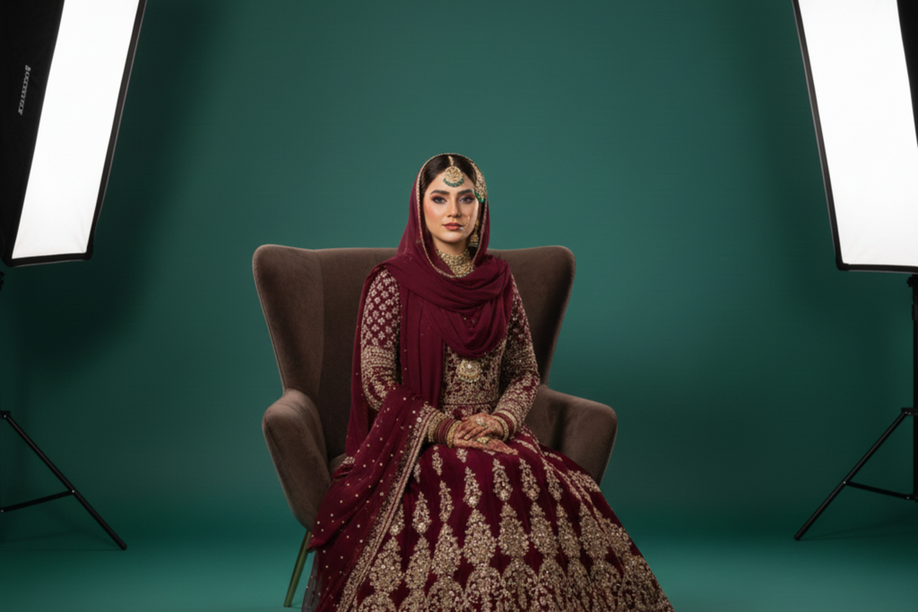 Use a solid-colored dupatta to maintain focus. |