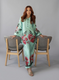 A fusion of elegance and bold artistry. Crafted in a captivating pink hue, this two-piece silk dress is adorned with vibrant floral designs that make a statement. Effortlessly chic yet timelessly graceful, Perfect for formal and informal settings